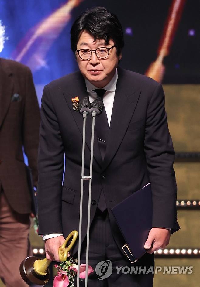 (서울=연합뉴스) 이재희 기자 = 대통령표창을 받은 배우 김윤석이 24일 오후 서울 중구 국립극장에서 열린 '2022 대한민국 대중문화 예술상' 시상식에서 소감을 밝히고 있다. 2022.11.24