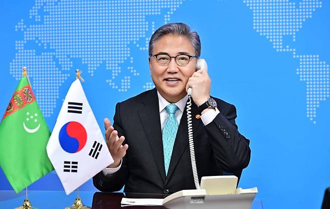 (서울=연합뉴스) 박진 외교부 장관이 24일 라시드 메레도프 투르크메니스탄 부총리 겸 외교장관과 통화를 하고 수교 30주년을 맞은 양국 관계 발전 방안을 논의하고 있다. 2022.11.24 [외교부 제공. 재판매 및 DB 금지]