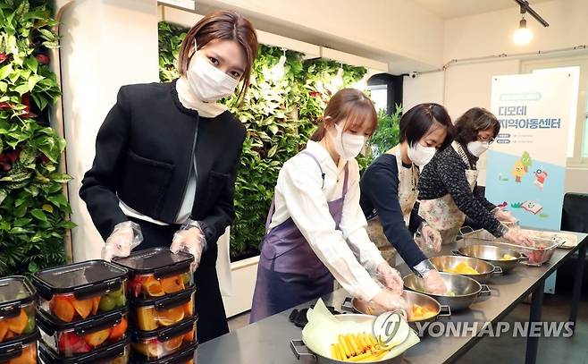 (서울=연합뉴스) 배우 최수영이 24일 서울 영등포구 디모데 지역아동센터에서 한국사회복지협의회 사랑나눔사업단의 특식지원 봉사활동에 참가해 과일을 포장하고 있다. 2022.11.24 [한국사회복지협의회 제공. 재판매 및 DB금지]
