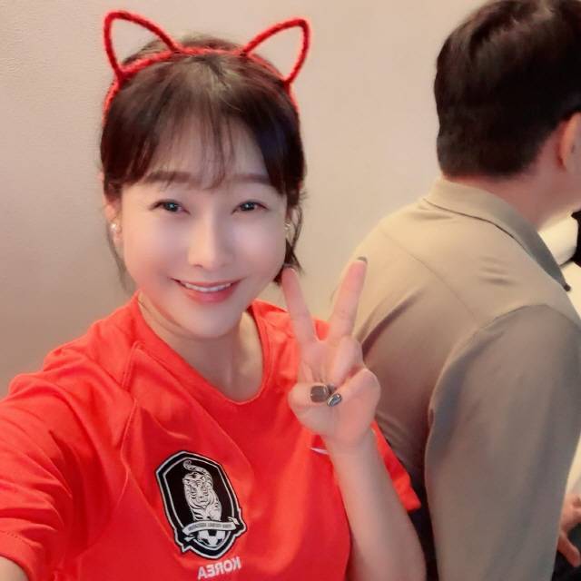 사진 속 현영은 붉은 머리띠에 티셔츠까지 갖춰 입고 월드컵 응원에 나선 모습. 현영의 옆에 보이는 남편의 듬직한 등이 눈길을 끈다. 이날 한국과 우루과이의 2022 카타르 월드컵 조별리그 H조 1차전이 열린다.
