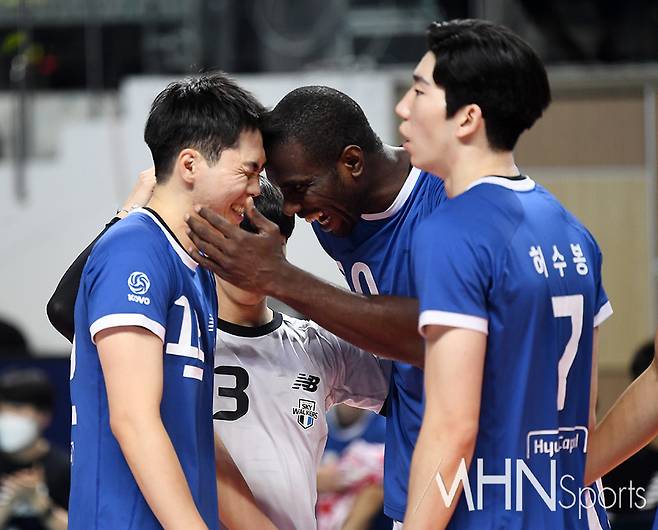 현대캐피탈 전광인, 오레올이 득점에 기뻐하고 있다.