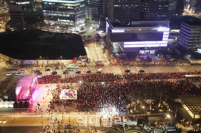 [이데일리 이영훈 기자] 2022 카타르 월드컵 한국과 우루과이의 경기가 열리는 24일 오후 서울 종로구 광화문 광장에서 시민들이 응원을 펼치고 있다.