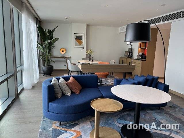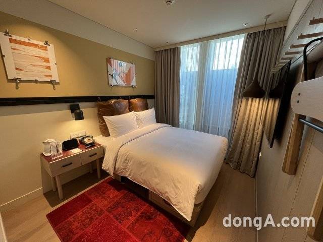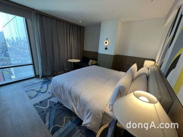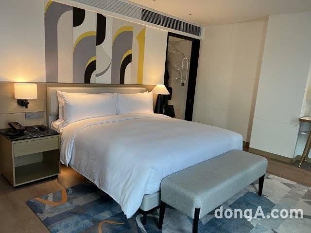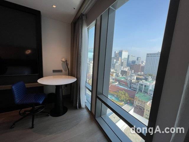 르메르디앙 서울 명동 객실은 화려함보다는 편안한 분위기에 중점을 뒀다. 그레이톤 카펫과 커튼, 아이보리 컬러 의자를 배치하면서 블루 컬러 소파와 오렌지색 의자로 포인트를 줬다. 모든 객실에는 인공지능(AI) 스피커 기가지니가 배치됐다. 온도 조절이나 룸서비스 등을 음성이나 터치 조작으로 간편하게 이용할 수 있다.