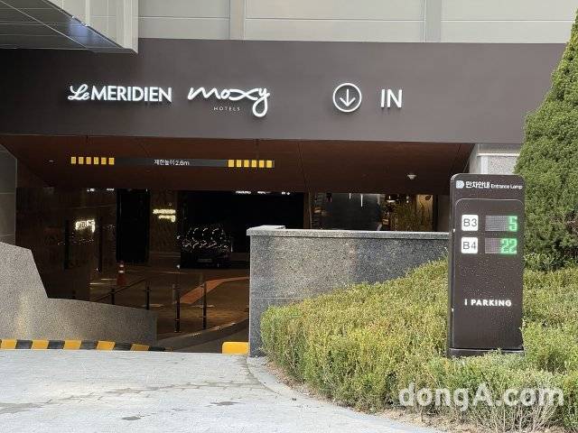 주변 거리는 다소 비좁게 느껴진다. 골목길 한 가운데에 커다란 호텔 새 건물이 들어선 모습이다. 거리를 오가는 사람들이 많아 차를 가져가면 주의해야 한다. 건물 규모에 비해 간판이 작아 대충 보면 이 건물이 호텔이라는 생각이 들지 않는다. 호텔 정문은 아직 공개하지 않았다. 오픈에 맞춰 공개 예정이라고 한다. 주차장은 지하에 마련됐다. 발렛 파킹존이 반지하 공간처럼 있다. 공간이 넓지 않아 한꺼번에 많은 차를 수용할 경우 주차장 입구가 막힐 수 있다. 주차장 입구는 경사가 있어 지상고가 낮은 차는 진입이 어려울 수 있다. 일반 세단 승용차도 천천히 진입할 것을 권장한다. 주차장은 100대 규모라고 한다. 객실(총 405실)에 비해 작지만 바로 옆 중앙우체국 주차장을 이용할 수 있도록 했다. 중앙우체국과 협약을 맺었다고 한다.