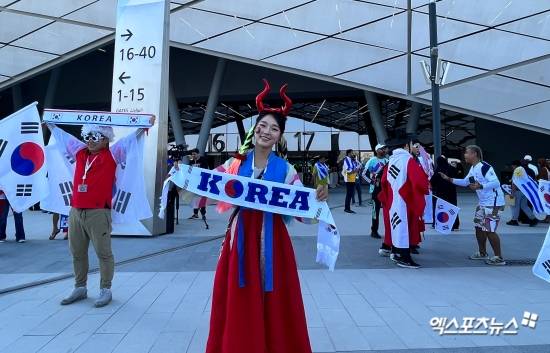 에듀케이션 시티 스타 된 '한복녀' "한국 승리...박빙 스코어 되면 재밌을 것" [한국-우루과이]