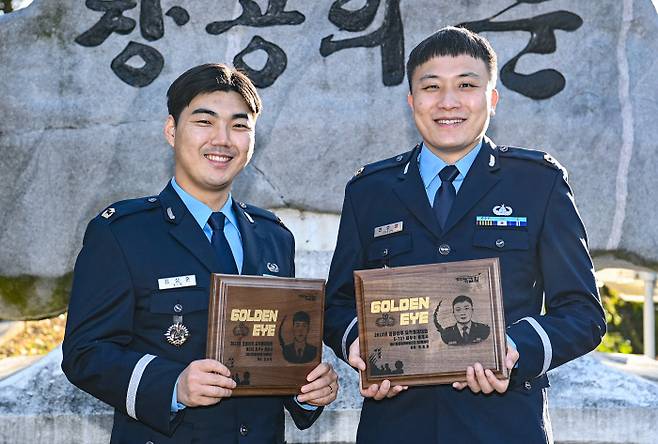 공중으로 침투하는 적기를 요격하기 위해 아군 요격기를 관제하는 최우수 방공무기통제사인 ‘골든아이’(Golden Eye)에 김상훈 준위(29·방공준사관 6기·사진 왼쪽)와 천호정 준위(36·방공준사관 6기·오른쪽)가 뽑혔다.