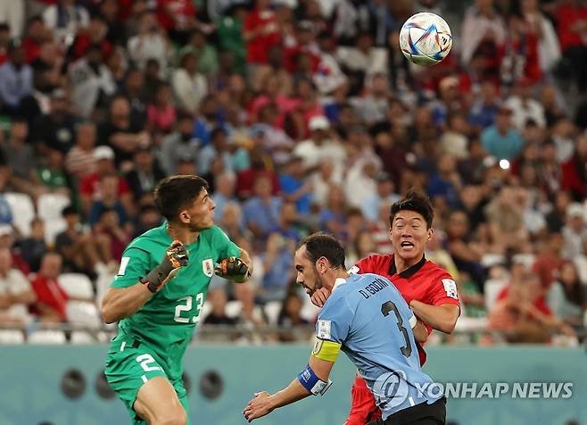 (알라이얀=연합뉴스) 임헌정 기자 = 24일 오후(현지시간) 카타르 알라이얀의 에듀케이션 시티 스타디움에서 열린 2022 카타르 월드컵 조별리그 H조 1차전 대한민국과 우루과이 경기. 한국 황의조가 골기회를 엿보고 있다. 2022.11.24
