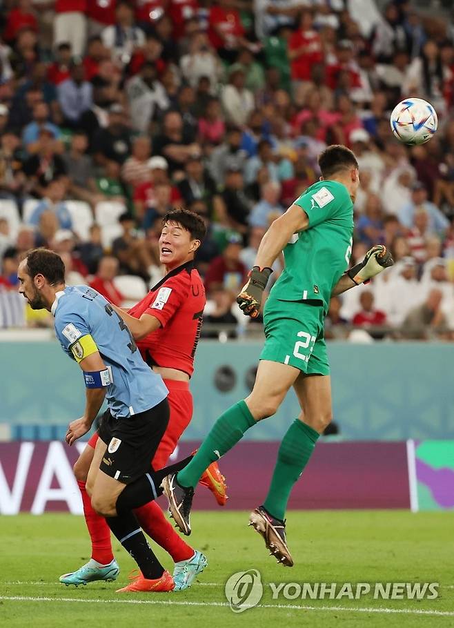 (알라이얀=연합뉴스) 임헌정 기자 = 24일 오후(현지시간) 카타르 알라이얀의 에듀케이션 시티 스타디움에서 열린 2022 카타르 월드컵 조별리그 H조 1차전 대한민국과 우루과이 경기. 후반전 우루과이 골키퍼 세르히오 로체트가 공을 걷어내고 있다. 2022.11.24