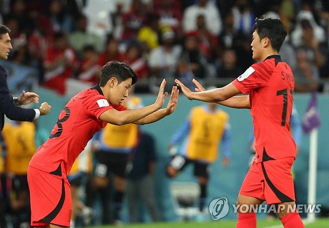 (알라이얀=연합뉴스) 김도훈 기자 = 24일 오후(현지시간) 카타르 알라이얀의 에듀케이션 시티 스타디움에서 열린 2022 카타르 월드컵 조별리그 H조 1차전 대한민국과 우루과이 경기. 한국 이강인이 후반전에 나상호와 교체 투입되고 있다. 2022.11.24