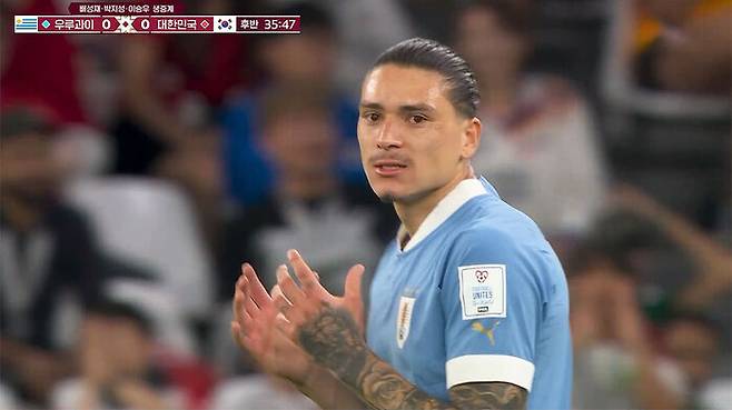 후반 35분, 우루과이 카바니의 패스를 이어받은 누녜스가 날카로운 오른발 감아 차기 슈팅을 시도했으나 골문 옆으로 벗어났습니다.