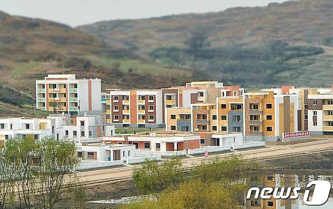 (평양 노동신문=뉴스1) = 북한 노동당 기관지 노동신문은 25일 "당의 웅대한 사회주의농촌건설 강령의 정당성과 생활력이 온 나라 방방곡곡에서 변혁적 실체로 뚜렷이 과시되고 있는 속에 함경남도 금야군 용원농장 농산제1·2작업반, 북청군 문동과수농장 농산 제3작업반, 개성시 덕암농장 소재지 마을에 수백 세대의 농촌살림집이 훌륭히 일떠섰다"라고 보도했다. 사진은 개성시 덕암농장마을.