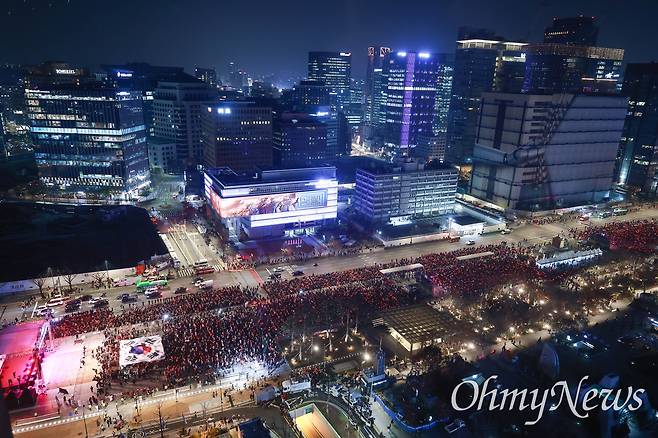 | ▲ 2022카타르월드컵 우루과이전 거리응원이 24일 저녁 서울 광화문광장에서 열리고 있다. |