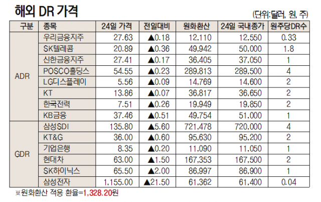 [데이터로 보는 증시]해외 DR 가격(11월 24일)