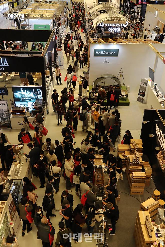 [이데일리 이영훈 기자] 제21회 서울 카페쇼가 25일 서울 강남구 삼성동 코엑스에서 열린 가운데 시민들이 참가부스를 구경하고 있다.