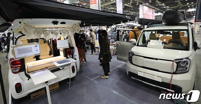 (고양=뉴스1) 임세영 기자 = 25일 경기도 고양시 킨텍스에서 열린 2022 국제아웃도어 캠핑&레포츠 페스티벌에서 관람객들이 캠핑카를 살펴보고 있다. 2022.11.25/뉴스1