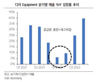 김도현 애널리스트는 이에 대해 “북미지역의 강력한 농기계 수요와 가격 결정력이 내년에도 이어질 것이라는 경영진의 자신감이 반영된 것으로 보인다”고 말했다. 그는 이어 “하반기 농산물 가격이 상반기와 비교해 약세를 보였지만 대형 농기계 수요 모멘텀이 유지되고 있다”며 “이는 현재 농산물 가격은 효율적이고 생산성이 높은 농기계 수요를 자극하기에 충분한 수준임을 입증하는 결과”라고 해석했다.