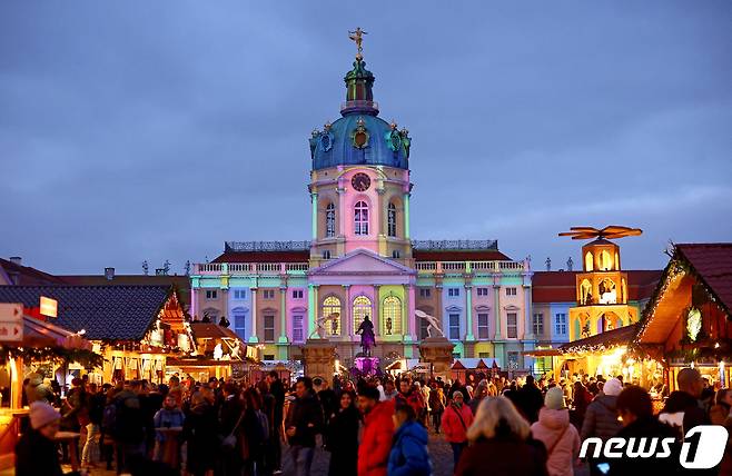 (베를린 로이터=뉴스1) 최종일 기자 = 24일(현지시간) 독일 베를린에 있는 샤를로텐부르크성 앞에 차려진 크리스마스 마켓에 인파가 가득하다.