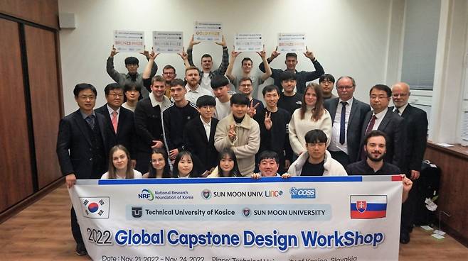 선문대학교는 최근 슬로바키아 현지에서 계명대학교, 코시체 공과대학(Technical University of Kosice)과 함께 글로벌 캡스톤디자인 공동 수업을 실시했다고 25일 밝혔다.