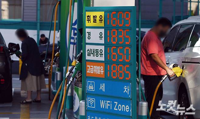 20일 서울시내 한 주유소에 휘발유 보다 비싼 경유와 실내등유 가격이 각각 1,835원과 1,650원을 나타내고 있다. 휘발유 가격은 주간 단위로 10주 연속 하락해 주간 평균 경유와 휘발유 가격 차는 230원가량 벌어졌다. 황진환 기자