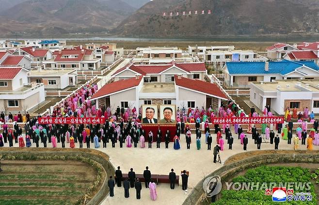 (평양 조선중앙통신=연합뉴스) 북한 조선중앙통신은 25일 "함경남도 금야군 룡원농장 제1·2작업반, 북청군 문동과수농장 제3작업반, 개성시 덕암농장 소재지 마을에 수백 세대의 농촌살림집이 훌륭히 일떠섰다"고 보도했다. 2022.11.25