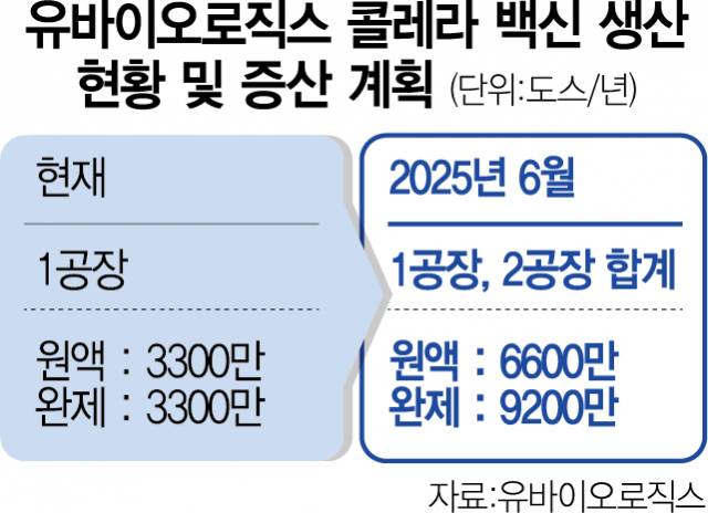유바이오로직스는 “공공 백신은 물론 최근 전 세계 콜레라 유행에 따라 늘어난 민간 수요에 대응해 증산을 추진했다”며 “원액 6600만 도스 기준으로 연간 기대 매출은 약 1000억 원”이라고 설명했다.