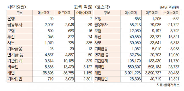 [데이터로 보는 증시]코스피·코스닥 투자주체별 매매동향(11월 25일-최종치)