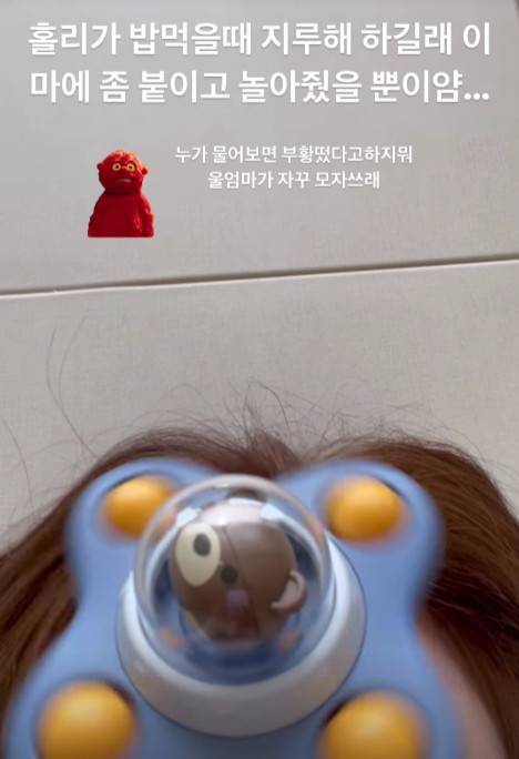 이어 "홀리가 밥 먹을 때 지루해 하길래 이마에 좀 붙이고 놀아줬을 뿐이얌"이라는 글과 함께 영상을 게재했다.
