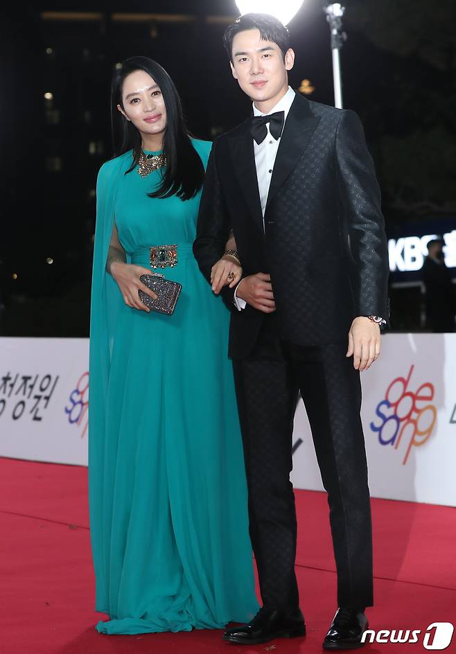 (서울=뉴스1) 권현진 기자 = 배우 김혜수와 유연석(오른쪽)이 25일 서울 영등포구 KBS홀에서 열린 ‘제43 청룡영화상’ 시상식에서 레드카펫을 밟고 있다. 2022.11.25/뉴스1