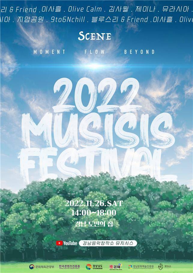 페스티벌 전 공연은 유튜브 채널(https://www.youtube.com/@-musisis6901) '경남음악창작소 뮤지시스'를 통해 온라인 관람이 가능하다.