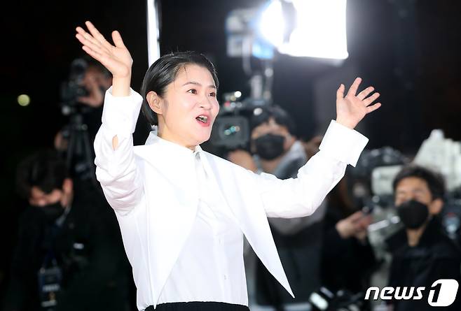 (서울=뉴스1) 권현진 기자 = 개그우먼 김신영이 25일 서울 영등포구 KBS홀에서 열린 ‘제43 청룡영화상’ 시상식에서 레드카펫을 밟고 있다. 2022.11.25/뉴스1