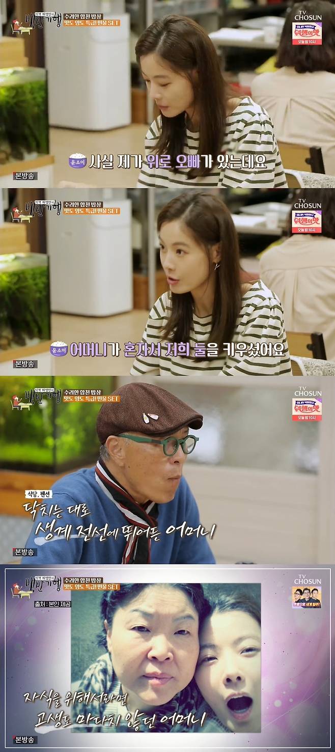 '백반기행' 윤소이가 어머니의 헌신에 대해 언급했다.