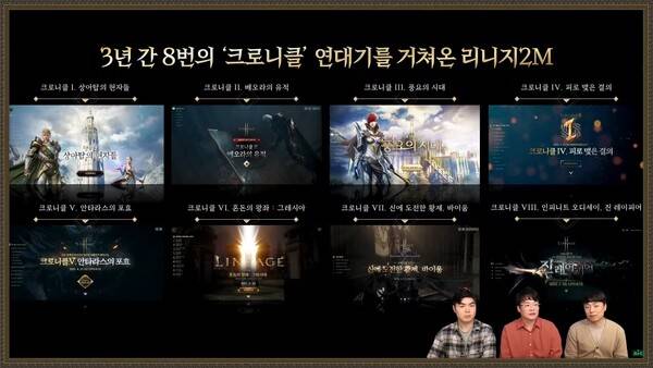 리니지2M은 3년 간 크로니클 연대기를 8회 거쳐왔다. 김 캠프장과 전 PD는 첫 대형 레이드를 선보인 '안타라스의 포효'를 가장 인상적인 업데이트로 꼽았다. 개발진은 8년 동안 어떤 일이 있었는지 데이터로 공유했다.