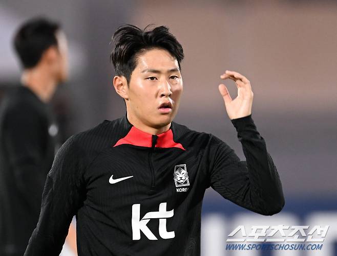 25일 축구국가대표팀 선수들이 카타르 도하 알 에글라 트레이닝센터에서 훈련을 했다. 동료들과 함께 몸을 풀고 있는 이강인. 도하(카타르)=송정헌 기자songs@sportschosun.com/2022.11.25/