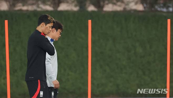 [도하(카타르)=뉴시스] 조성우 기자 = 대한민국 축구대표팀 황희찬이 25일(현지시간) 오후 카타르 도하 알 에글라 트레이닝센터에서 훈련을 위해 이동하고 있다. 2022.11.25. xconfind@newsis.com