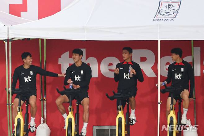 [도하(카타르)=뉴시스] 조성우 기자 = 대한민국 축구대표팀 손흥민을 비롯한 선수들이 25일(현지시간) 오후 카타르 도하 알 에글라 트레이닝센터에서 훈련하고 있다. 2022.11.25. xconfind@newsis.com