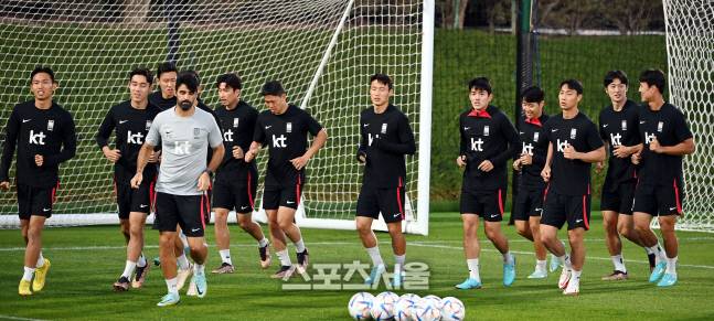 축구대표팀 선수들이 25일 카타르 도하 에글라 트레이닝센터에서 훈련을 하고 있다.