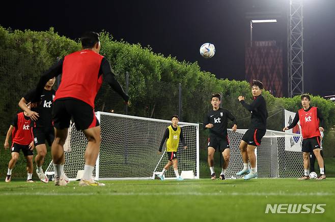[도하(카타르)=뉴시스] 조성우 기자 = 대한민국 축구대표팀 선수들이 25일(현지시간) 오후 카타르 도하 알 에글라 트레이닝센터에서 훈련을 하고 있다. 2022.11.25. xconfind@newsis.com