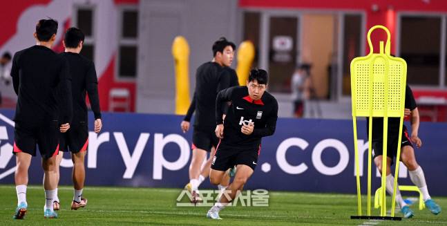 축구대표팀 이강인이 25일 카타르 도하 에글라 트레이닝센터에서 훈련을 하고 있다.