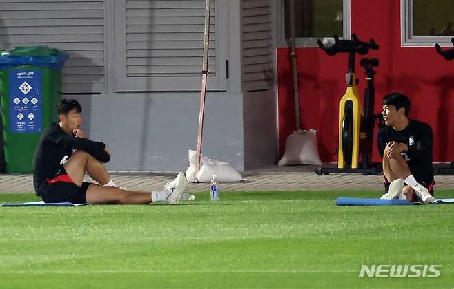 [도하(카타르)=뉴시스] 조성우 기자 = 대한민국 축구대표팀 손흥민 등이 25일(현지시간) 오후 카타르 도하 알 에글라 트레이닝센터에서 회복훈련하고 있다. 2022.11.25. xconfind@newsis.com