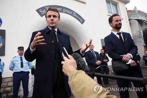 epa10327654 French President Emmanuel Macron attends a press conference during a visit at the Gendarmerie school in Longvic, near Dijon France, 25 November 2022, as part of the International Day for the Elimination of Violence Against Women. EPA/Christophe Petit Tesson / POOL