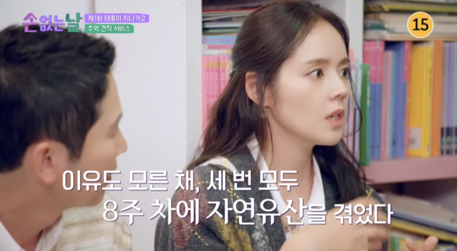 이후 한가인은 난임 떄문에 고생했다고 밝힌 사연자 부부에게 "저도 한 해에 자연유산만 3번 겪었다. 8주차에 갑자기 심장이 안 뛴다는 말을 세 번 들은 거다. 연정훈과 산부인과 갈 때마다 한 마디도 안했다. 너무 절박하니까"고 고백했다.