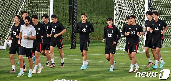 (도하(카타르)=뉴스1) 이동해 기자 = 파울루 벤투 감독이 이끄는 대한민국 축구대표팀 선수들이 25일 오후(현지시간) 카타르 도하 알에글라 트레이닝센터에서 가볍게 뛰고 있다. 2022.11.25/뉴스1
