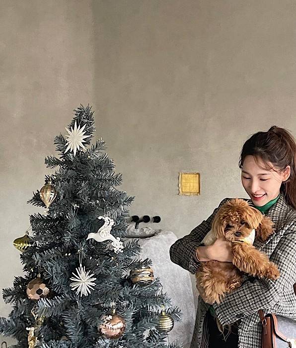 공개한 사진 속 이나연은 크리스마스트리 옆에서 강아지를 품에 안고 함박웃음을 짓고 있다. 보는 이들도 기분 좋게 만들어는 사랑스러운 미소가 눈길을 끌었다