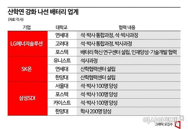 배터리 기업들이 대학과의 산·학·연 협력을 강화하고 나섰다.