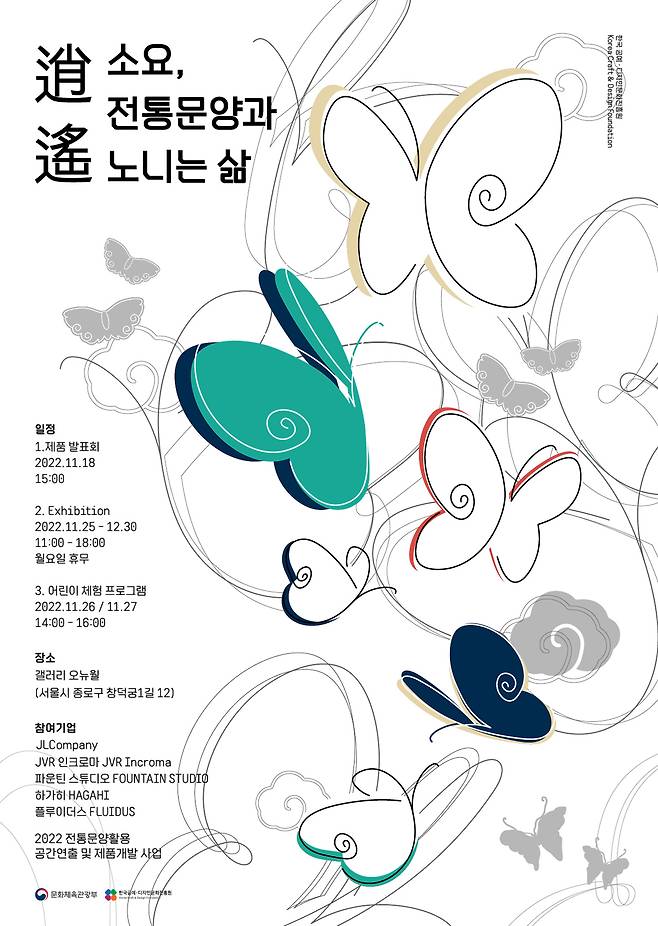 '소요, 전통문양과 노니는 삶'을 주제로 마련된 이번 프로젝트(디렉터 변홍철, 그레이월 대표)에는 국내 유수의 제품 디자인 스튜디오와 패션 및 일상 용품 제조업체가 참여해 전통문양을 활용한 디자인 상품을 선보인다.