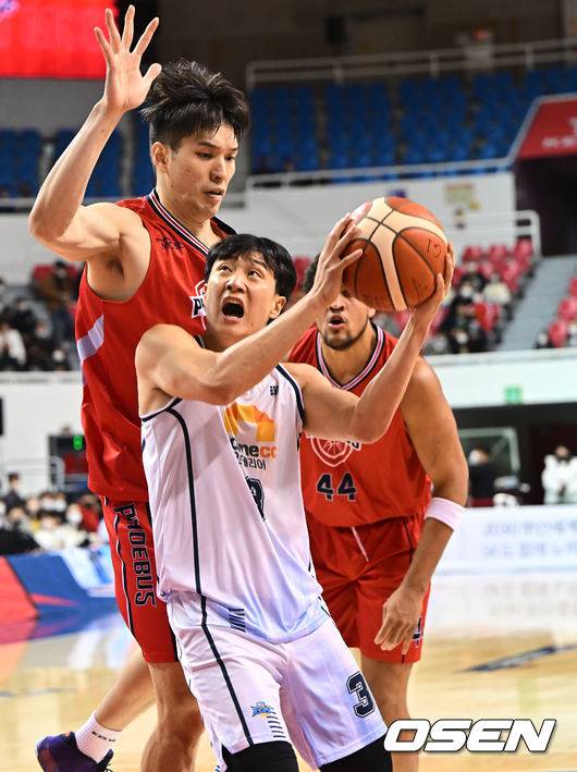 전주 KCC 허웅이 울산 현대모비스 장재석의 마크를 피해 골밑슛을 시도하고 있다. 2022.11.26 / foto0307@osen.co.kr