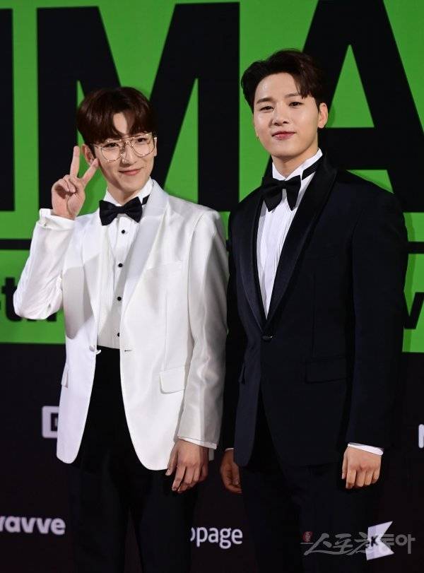 그룹 멜로망스가 26일 서울 구로구 고척스카이돔에서 열린 ‘2022 멜론뮤직어워드’ 레드카펫에서 포즈를 취하고 있다.