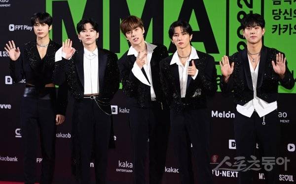 그룹 몬스타엑스가 26일 서울 구로구 고척스카이돔에서 열린 ‘2022 멜론뮤직어워드’ 레드카펫에서 포즈를 취하고 있다.