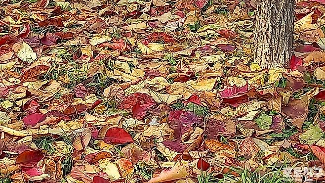 남은 잎들이 바람을 견디며...