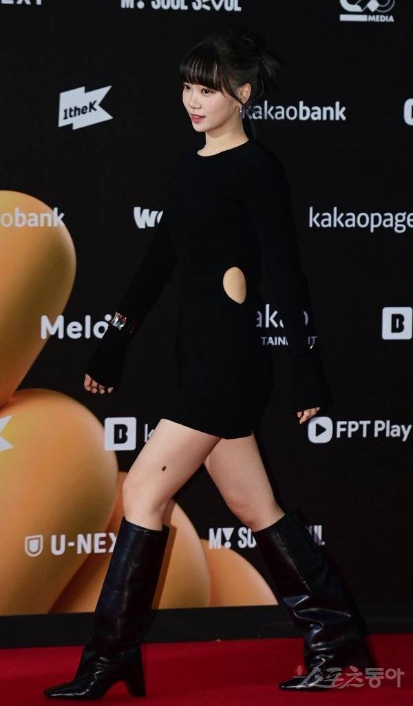르세라핌 김채원이 26일 서울 구로구 고척스카이돔에서 열린 ‘2022 멜론뮤직어워드’ 레드카펫을 통해 입장하고 있다.